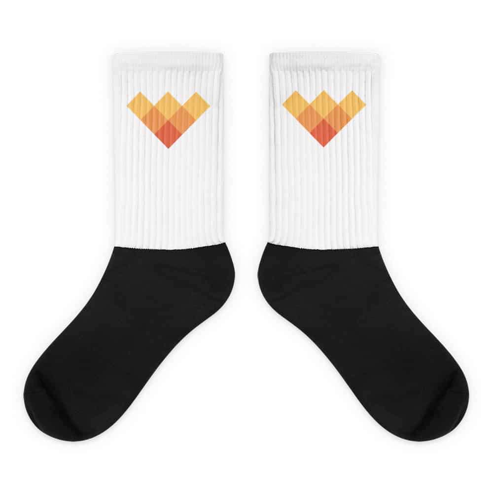 The Digital Excellence Awards socks are extra comfortable thanks to their cushioned bottom. The foot is black with artwork printed along the leg with crisp, bold colors that won't fade.