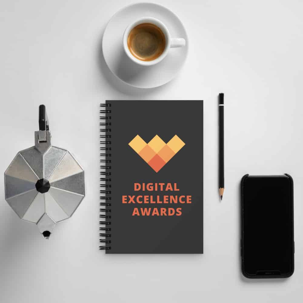 A good notebook can help you with motivation to take more notes, write down ideas, or list future dreams. The Digital Excellence Awards custom wire-bound notebook will be a great daily companion whenever you need to put your thoughts down on paper!